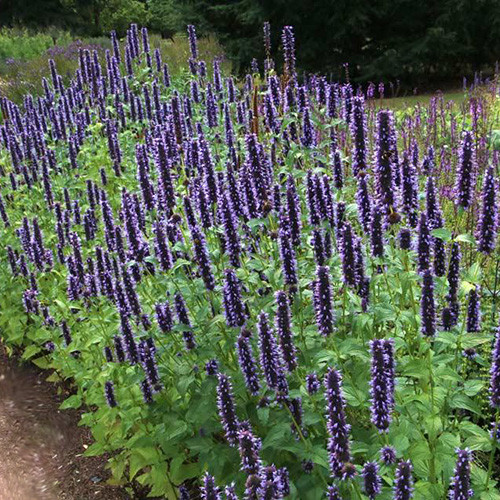 Травянистое многолетнее растение высотой до 60-90 см. Куртины разрастаются до 40-60 см в ширину. Цветёт продолжительно: в июле-сентябре. Сине-фиолетовые цветки в колосовидных соцветиях до 10-15 см. Листья ланцетные, слегка опушенные, край зубчатый, как у крапивы. Растение обладает приятным анисовым ароматом. Выращивать желательно на открытых солнечных местах. Хорошо подойдут лёгкие дренированные почвы. Растение устойчиво к засухе. После цветения можно срезать на высоту 10 см. Перед наступлением заморозков рекомендуется замульчировать. Боится вымокания в зимне-весенний период. Применение: природные цветники, миксбордеры, бордюры, цветники «новой волны», подходит для срезки, медонос.