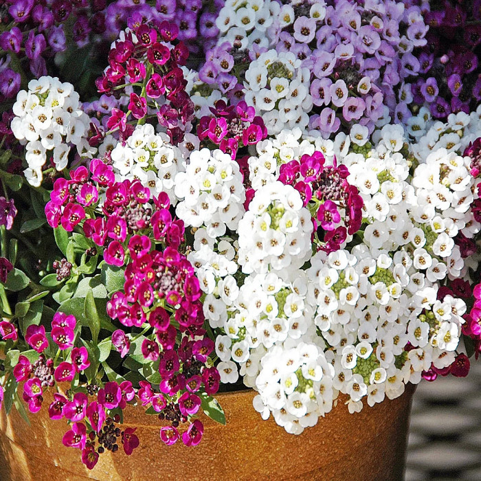 Алиссум - однолетнее и многолетнее растение небольшой высоты (не более 10-20 см). Имеет сильно ветвящиеся побеги. Разрастается он быстро, поэтому хорошо выдерживать расстояние между посадками. Неприхотлив. Ему нужно щедрое освещение. В тени цветение у него может быть неравномерным. При частых осадках рекомендуется совсем не поливать растение. В самую жаркую погоду полив нужен умеренный. Алиссум относится к морозостойким летне- и осеннецветущим. Цветки мелкие, чаще ярко желтые, образуют соцветия - кисти, которые скрывают зелень компактных кустиков.