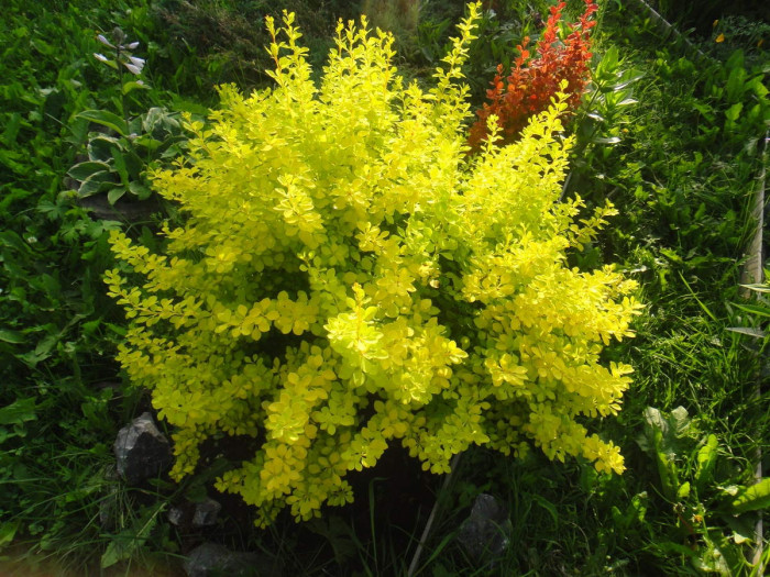 Очень красивый декоративный кустарник с золотистым цветом листвы (осенью уходит в оранжевые и бронзовые оттенки)- яркое цветовое пятно в Вашем саду Многоствольный: по 15-20 центральных побегов на каждом кусте. На стеблях большое количество побочных ветвей, формирующих широкую крону. Это позволяет активно использовать данный сорт для топиарной стрижки (выстригать кубы, шары, конусы). Кустарник очень эффектен в низких изгородях, сохраняет декоративность до самых заморозков Молодые барбарисы округлые. По мере роста крона деформируется и для сохранения декоративности веточки лучше подрезать Высота взрослого растения - 80-90 см, диаметр - около 100 см. в молодом возрасте веточки могут немного подмерзать. для профилактики мучнистой росы рекомендуем обработку каждые три недели фунгицидом Топаз или аналогичными