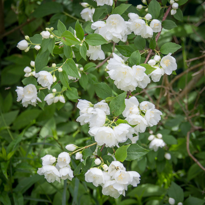 Чубушник представляет собой листопадный кустарник с крепкими одеревенелыми побегами. Чубушник -многолетник, который может с лёгкостью пережить даже самые суровые зимы.Средний куст вырастает до 3 метров, а в некоторых случаях его высота доходит до 5 метров. Растение имеет необычные красивые листья золотистого цвета, за счёт чего выглядит одинаково привлекательно даже после того, как отцветает. Кустарник не очень требовательный, и высаживать его можно на любом грунте. Поливать его стоит каждые 10-11 дней. Размещать кусты можно поодиночке или массивом.Часто чубушник используют как живую изгородь на приусадебных участках.