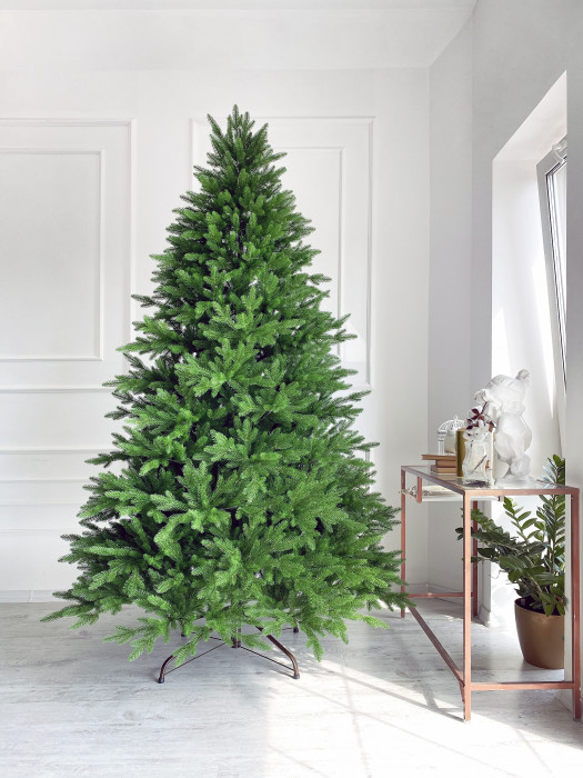 Модель Королевская - 100% литая елочка. Эта красотка вобрала в себя все преимущества других моделей! Веточки хвои мягкие и приятные на ощупь, выглядят очень реалистично и сделаны из силикона. Ёлочка очень пушистая и объемная. Система крепления веток - шарнирная, что позволяет экономить время на сборке / разборке ёлочки. Модель "королевская" способна удовлетворить даже самых искушенных покупателей, предлагая несколько вариантов на выбор: встроенное освещение (модели люкс) или снежное напыление из хлопка. Варианты в другом размере доступны по предварительному заказу: 215см, 230см, 250 см, 270 см, 300 см Наши елочки производятся в России из премиальных материалов, полностью безопасны для людей и животных.