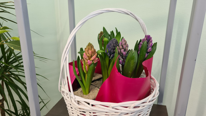 Кашпо с крокусом или гиацинтом (3 - 5 луковиц с декоративным оформлением)