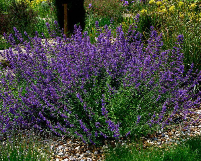 Замечательный выбор для создания низких бордюров, нижнего яруса цветника, посадки в розарии. Листья ароматные. Для постоянного цветения рекомендуем регулярно удалять отцветшие соцветия (при этом декоративность сохраняется практически в течение всего сезона (с июня по сентябрь). Высотой до 25 см; листья продолговато-ланцетные, серовато-зеленые из-за опушения. Цветки мелкие, собраны в рыхлую кисть, лавандовой окраски