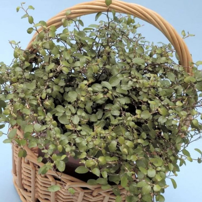 Мюленбекия (Muehlenbeckia) - многолетний сильноветвящийся вечнозеленый полукустарник с вьющимися тонкими гладкими побегами коричневого или бурого цвета. Они сильно переплетаются и достигают в длину от 15 см до 3 метров. Листья мелкие, размером до 2 см, на коротких черешках, имеют овальную или клиновидную форму. Зимой растение часть листьев сбрасывает. Цветки у мюленбекии невзрачные, белые или зеленоватые, до 5 мм в диаметре, собраны в пазушные кистевидные соцветия. Уход за мюленбекией Температура и освещение мюленбекия может расти при частичном затенении, но предпочитает рассеянный свет. Летом ей нужна умеренная температура 20-23 градуса, зимой не ниже 10. Для этой лианы прохладная зимовка является если и не обязательным условием роста и развития в комнатных условиях, то крайне желательным. Влажность воздуха и полив грунт в горшке должен быть постоянно влажным. Растение неплохо выносит сухой воздух, но во избежание появления паутинного клеща лиану периодически опрыскивают. Зимой при теплом содержании увлажняют регулярно. Удобрение и подкормка один раз в 2-3 недели подкормкой для декоративнолиственных растений. Мюленбекия к почвам абсолютно нетребовательна, главное, чтобы грунт был легким и рыхлым. Самым чувствительным местом растения являются корни, при их повреждении оно долго болеет. Лучше не пересаживать, а переваливать мюленбекию каждую весну в горшок большего размера с хорошим дренажным слоем. Для уличного озеленения растение выращивают как однолетник, Активно используется в контейнерном озеленении Цветение и обрезка обычно в августе зацветает мелкими невзрачными белыми цветочками с приятным запахом. Мюленбекия прекрасно переносит обрезку, для придания большей декоративности нужно ее регулярно прищипывать и обрезать по своему усмотрению. Также весной следует обрезать оголившиеся стебли.