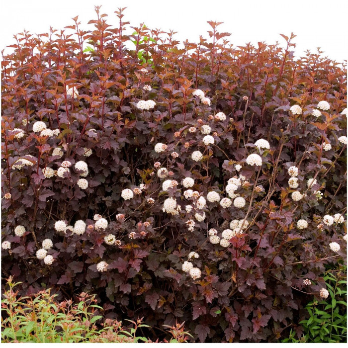 ПУЗЫРЕПЛОДНИК КАЛИНОЛИСТНЫЙ "DIABOLO"-кустарник с множеством прямых побегов,выс. До 3м.Листья овальные ,3-5-лопастные пурпурно-красные.Неприхотливый,растет как на сухих,так и влажных почвах.Морозоустойчив.Рекомендуется высаживать одиночно или группами,в живых изгородях.