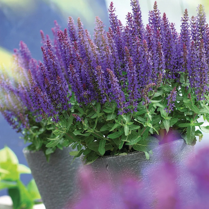 Шалфей дубравный (Сальвия) представляет собой невысокий травянистый кустарник, который при правильном уходе цветет весь сезон. Это пряное растение с травянистым стеблем и ланцетовидными листочками. Соцветия фиолетового или синего оттенка имеют колосовидную форму. Высота этого травянистого кустарника может достигать 90 см. Место под посадку выбирается хорошо освещенное и прогреваемое солнцем. К почве особых требований не предъявляет. Культура засухоустойчивая, переувлажнение для нее опасно. На зиму шалфей рекомендуется укрывать, поскольку это теплолюбивое растение. Шалфей высаживается на переднем плане или рядом с розами, лилиями. В альпийских горках он соседствует с гиацинтами, тюльпанами, ирисами.