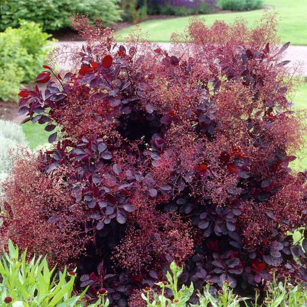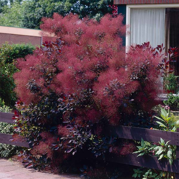 Крупный декоративный кустарник или деревце с раскидистой, шаровидной, а в зрелом возрасте зонтиковидной кроной, достигает 3–5 м в высоту. Смотрится необычайно эффектно благодаря оригинальной пурпурной окраске листвы и эффектным пушистым соцветиям. Цветет в июне – июле мелкими цветками, собранными в рыхлые ажурные метельчатые соцветия. Большая часть цветков опадает, зато цветоножки, покрытые тонкими волосками, смотрятся на дереве как облако. Светолюбива и засухоутойчива, не любит тяжелых переувлажненных почв. Используется как яркий цветовой акцент в композициях. Отлично смотрится в одиночных посадках. Растение теплолюбиво и сажать его нужно в максимально теплых, защищенных от ветра места. В условиях Беларуси молодые растения требуют укрытия на зиму. Не стоит сажать скумпию рядом с кленам остролистным и ясенелистным, робинией, тополем черным. Выделяемые скумпией органические кислоты могут привести эти растения к гибели.
