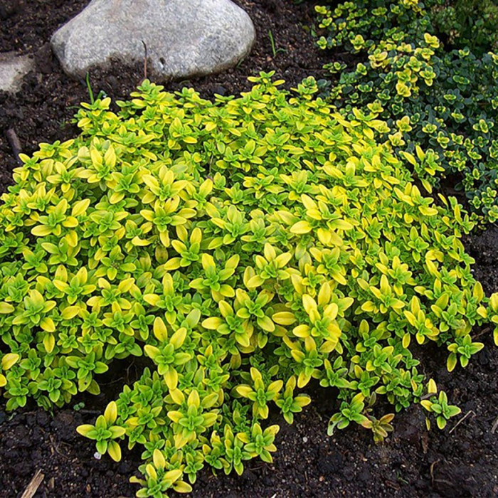 Тимьян лимоннопахнущий (Thymus citriodorus ) - компактный, не выше 10-20 см высотой многолетник с ползучими или слегка приподнятыми побегами. Листочки обладают замечательным цитрусовым ароматом. Используется как почвопокровное растение, в качестве нижнего яруса в сложных композициях. Из недостатков – может вымерзать в зимний период.