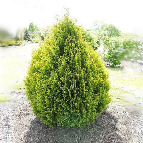Мощное хвойное дерево с густой пирамидальной кроной. Побеги широкие, ярко-зелёного цвета, на кончиках золотисто-жёлтые. Хвоя имеет терпкий аромат при растирании. Мелкие кожистые шишки длиной до 12мм,постепенно меняют окрас от жёлто-зелёного до коричневого. Хорошо себя чувствует в полутени. Прямыми солнечными лучами может обжигаться, особенно в зимний период. Почвы предпочитает влажные и плодородные. Применение: отлично подходит для создания высоких живых изгородей, хорошо стрижётся, можно также использовать в группах, как фон для красивоцветущих кустарников, может быть солитером на фоне газона.