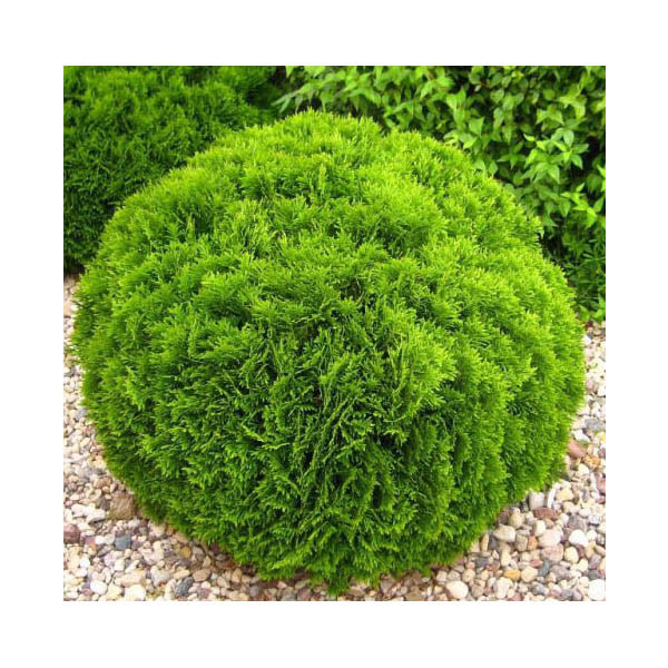 Карликовая шаровидная туя с густой кроной. Растет медленно, в год по 5 см в высоту и ширину. Высота взрослого растения 60 см. Хвоя: чешуйчатая, густая, зеленая, мягкая, блестящая, зимой – коричневато-зеленая. Свет: может расти на солнце и в полутени. На солнечных местах иногда страдает от колебаний температуры или обезвоживается от мороза и усыхает. Влага: требует умеренного увлажнения, может переносить сухость и избыточную влагу в короткие временные промежутки Почва: нуждается в достаточно плодородной почве, хорошо растет на свежих богатых субстратах, на плодородных суглинках Используется для создания вечнозеленых невысоких бордюров, как элемент невысоких композиций и декоративных групп, хорошо смотрится в альпинариях.