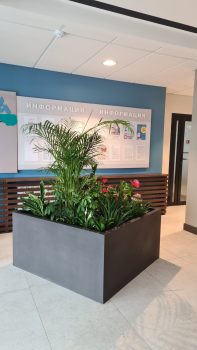 Разделение пространства: Контейнеры с растениями могут использоваться для создания различных зон или ограждений, например, для создания интимной области или разделения территорий.