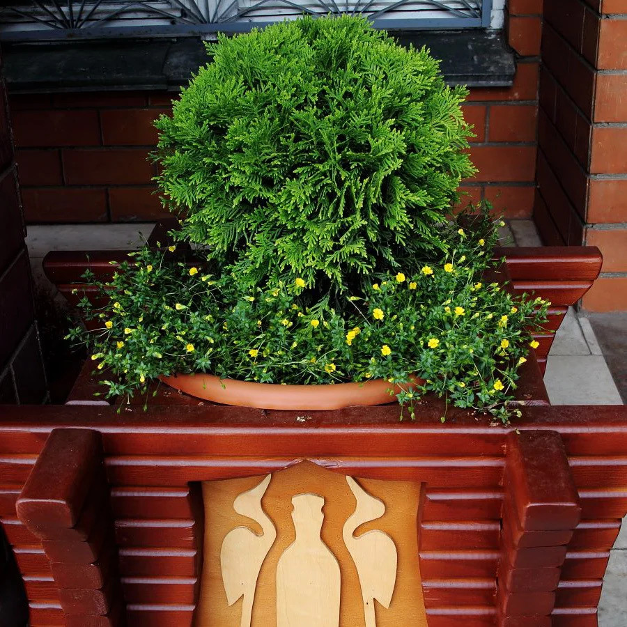Декоративные элементы: Различные декоративные элементы, такие как горшки с растениями, скамейки, фонари, вазоны и скульптуры, могут добавить уникальность и стиль к входной группе.