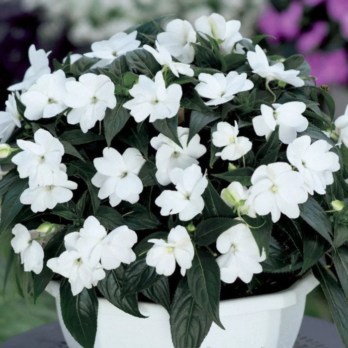 Многолетнее растение, часто встречается в комнатном садоводстве. При высадке в открытый грунт температура не должна опускаться ниже 9 градусов, иначе рассада погибнет (т.е. планируйте высадку бальзамина на вторую половину мая). Цветок эффектный с широким диапазоном окраски бутона и различными оттенками окраски листвы - от ярко зеленого то темно бордового. Формирует крупные эффектные кусты, которые будут украшением любого сада.