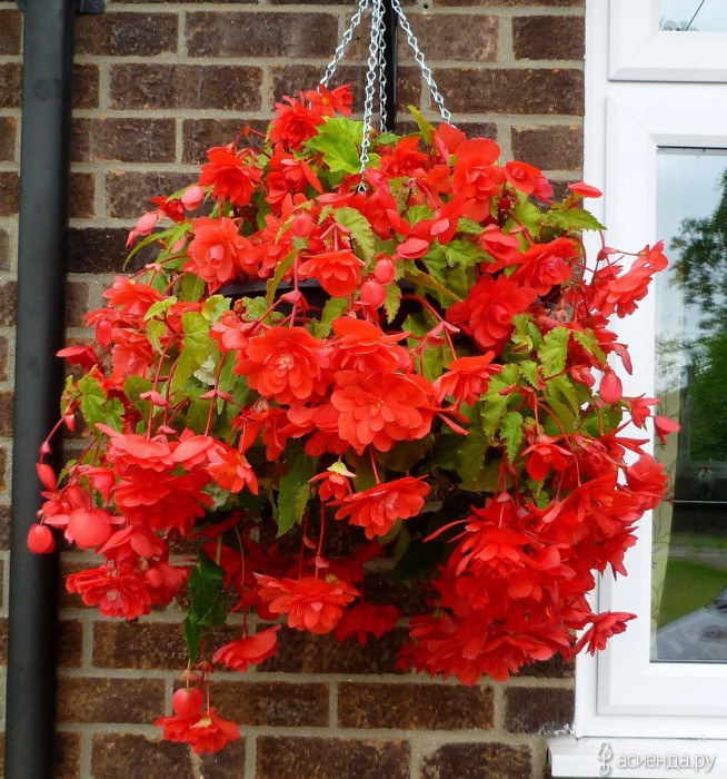 Бегония ампельная самая декоративная и красивая разновидность бегоний. Ниспадающая форма куста, продолжительное цветение и разнообразие окраски цветков делают это растение одним из самых востребованных в вертикальном озеленении. В вазонах и подвесных кашпо ампельная бегония станет изысканным украшением дома, балкона или террасы, а посадка и уход за растениями не доставят вам много хлопот. Поливы и подкормки вот и все, что нужно бегонии для пышного цветения с весны до поздней осени. Особенность бегонии ампельной изящные свисающие побеги, достигающие длины 30-45 см, и образующие живописный каскад из ярких цветов. Бутоны формируются в пазухах листьев на уровне 56 узла, имеют удлиненные цветоножки. Цветки у бегонии двух видов: мужские махровые, крупные (до 8 см в диаметре), и женские простые и более мелкие (примерно 5 см).
