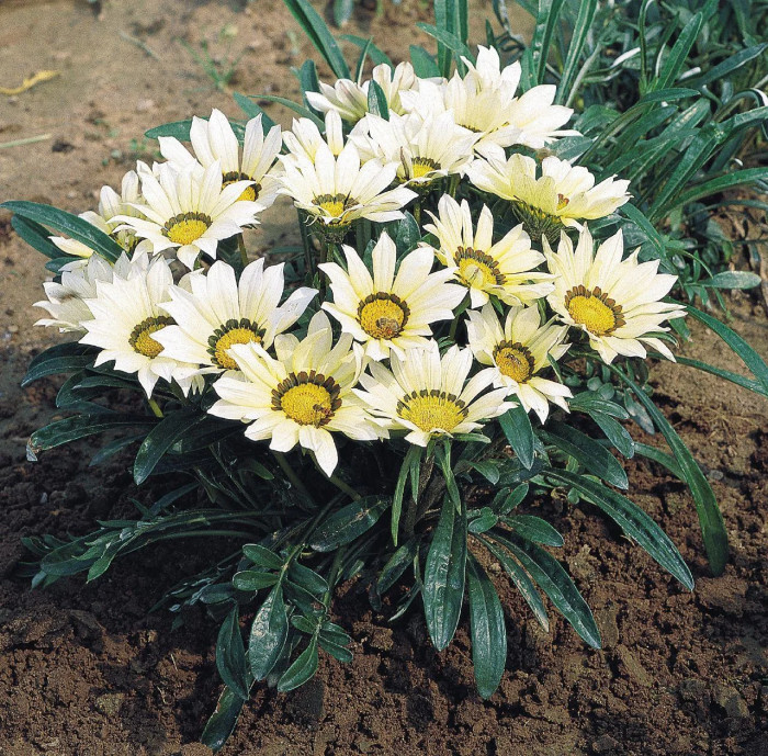 Гацания – многолетник, но в наших широтах выращивается как однолетнее растение. Растение яркое, низкорослое, высотой не более 25-30 см. Цветки разнообразной окраски: оранжевые, желтые, красные, белые, диаметром до 8 см. Интересно, что цветки раскрываются только в солнечную погоду. Цветет с конца июня до октября. Симпатичная гацания очень хорошо подходит для клумбы, бордюра, каменистой горки на солнечной стороне. Гацании исключительно засухоустойчивы, тепло- и светолюбивы. Почвы предпочитают легкие, питательные. Избытка влаги не переносят. На тяжелых глинистых почвах, особенно в дождливые годы, они чувствуют себя угнетенными. Уход: умеренный полив и удаление увядших соцветий способствует образованию новых бутонов.
