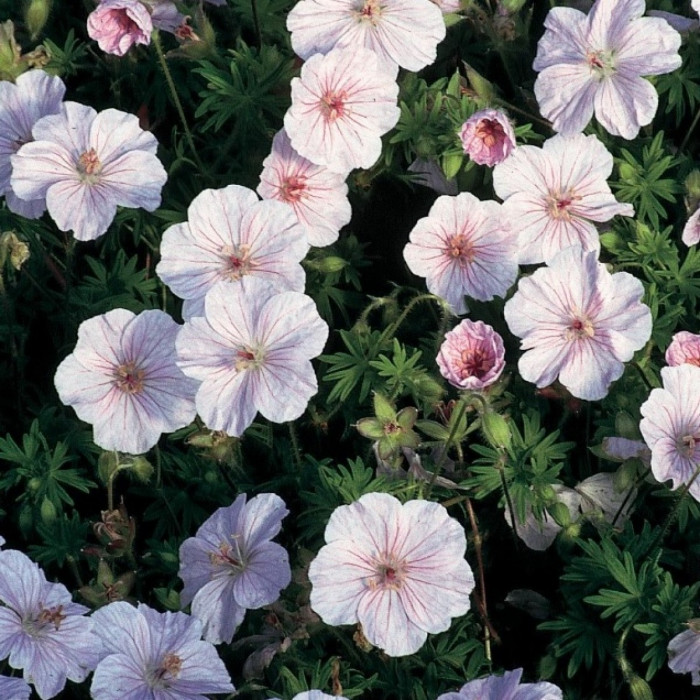 Герань кроваво-красная относится к семейству Гераниевых. Это многолетнее растение, характеризующееся покраснением стебля и листьев в зимний период, отчего данная герань и получила название кроваво-красная. Цветение происходит летом, при этом распускаются одиночные цветки розово-малинового оттенка, которые держатся на стебле от 7 до 12 дней. Striatum, другое название — Lancastriense. Отличается небольшой высотой по сравнению с другими сортами, поскольку вырастает до 10 см. Цветки имеют розовый окрас, лепестки по краям светлые, по центру тёмные.
