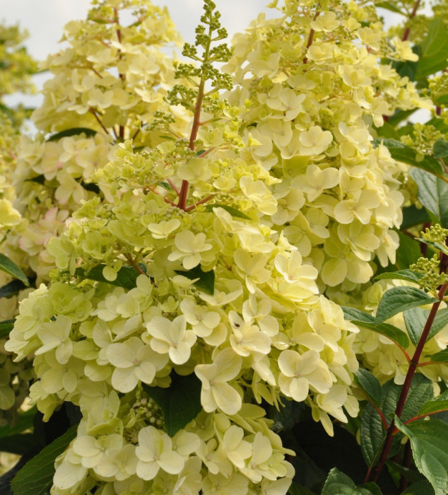 Раскидистый куст с округлой кроной, достигает 1,5 метра в диаметре. Соцветия интересно меняют окраску и в середине цветения достигают изумительного кремово-золотистого отлива. кустарник зимостойкий, хорошо формируется, шикарно смотрится в живых изгородях