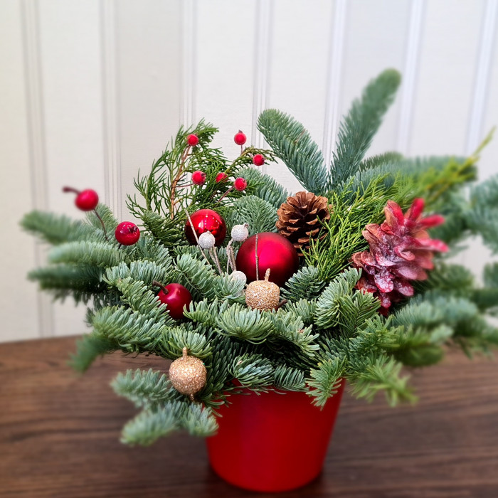 Подходит для праздничного оформления, идеальна в качестве подарка. Основа - пихта нобилис. Стойкая и ароматная. Также использованы веточки сосны и можжевельника, но возможно использование иных материалов на усмотрение флориста либо по пожеланиям Заказчика Оформление и декор - в зависимости от пожеланий заказчика. возможно использование природных материалов, стеклянных или пластмассовых украшений. Цена рассчитана исходя из примера на фото. Возможны небольшие корректировки при использовании иных материалов по согласованию с Заказчиком