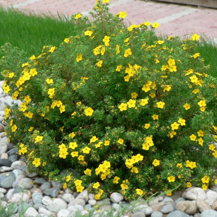 Лапчатка Голдфингер (Goldfinger) кустарниковое растение, обладающее высокими экстатическими качествами. Главной отличительной чертой цветка являются крупные и пышные бутоны насыщенного желтого цвета. Цветет растение в период с мая до начала осени. Красочные желтые цветки обильно покрывают Голдфингер в этот период. Максимальная высота кустарников доходит до 1,5 метра. Крона пышная и широкая. Аккуратные листья зеленого окраса обладают особыми декоративными качествами. Размещать кустарник лучше на хорошо освещенном участке. Лучше, если почва будет рыхлой. Полив должен быть умеренным и периодическим. В жаркое время года цветок особенно нуждается в воде. На один кустарник используют по 10 литров жидкости. Орошение проводят 3-5 раз за сезон. На зиму кустарник укрывать не надо. Кустарники часто высаживают близко друг к другу, создавая линию. Считается, что в таком виде красота растений раскрывается максимально. Однако одиночные растения также обладают высокой привлекательностью и очарованием. Так же часто высаживают лапчатку Голдфингер вместе с другими кустарниками. Желтые бутоны замечательно гармонируют с яркими цветками различных видов, создавая сочное разнообразие красок.