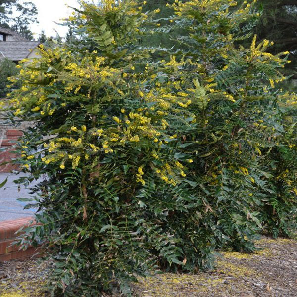 МАГОНИЯ ПАДУБОЛИСТНАЯ-вечно зеленый кустарник со множеством прямых побегов.Достигает 1 м высоту и ширину.Листья толстые,колючие,с остырми зубчатыми краями,тёмно-зеленые,блестящие.Цветки в ровынх кистях,желто-золотые.Плоды кислые,черно-голубые,круглые,используются для приготовления вина.Легко приспосабливается,растет на влажых,как кислых,так и нейтральных почвах.Листья используются для букетов.