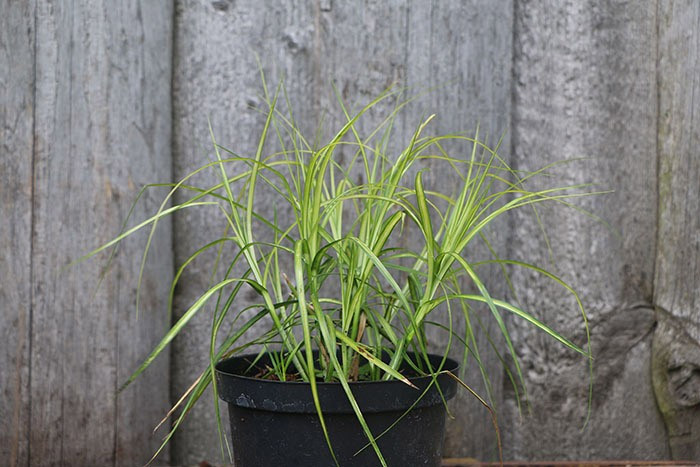 Осока пальмолистная 'f. variegata' образует плотную дернину. Листья глянцевые, зеленые, с белой полосой. Отличное растение для оформления небольшого пруда и композиционной высадки