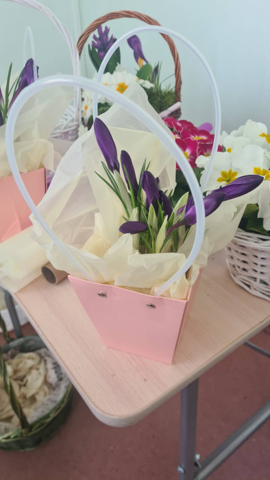 Упаковка, которая прекрасно подойдет и для цветочного горшка и для мини композиции или букета на губке. Пакет+ немного тишью + горшочек с растением и Ваш подарок выглядит нарядно и празднично