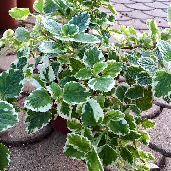 Плектрантус Мадагаскарский -мелколистный плектрантус с белой каймой, салатово-зелёным центром. Листики некрупные, ароматные. Может использоваться как самостоятельно для высадки в кашпо, подвесные корзины, так и в миксе с цветущими летниками или травами. Растение устойчиво к заболеваниям, образует плотную шапку. Плети нарастают более равномерно при регулярной обрезке.