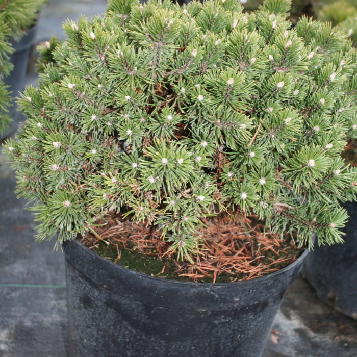 Медленнорастущий карликовый сорт горной сосны. прекрасно подходит для небольших садов и композиций В возрасте примерно 10 лет высота 0,4 м, диаметром 0,6 , темп ежегодного прироста медленный - 4-5 см. Хвоя, густая и очень плотная, окраска темно-зеленая. Крона шарообразная, ветки направлены вверх, шишки при созревании желтого цвета.