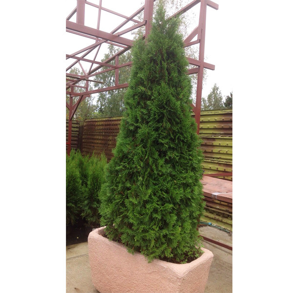 Туя западная Смарагд (Thuja occidentalis Smaragd). Один из наиболее популярных сортов туи с правильной конической формой. Хорошо поддается стрижке и формирующей обрезке, любит хорошую почву и регулярный полив; используется как для создания живой изгороди так и в одиночных и групповых посадках. Поставляется с комом (из грунта) либо в контейнере С20 (ЗКС). Возможна высадка.